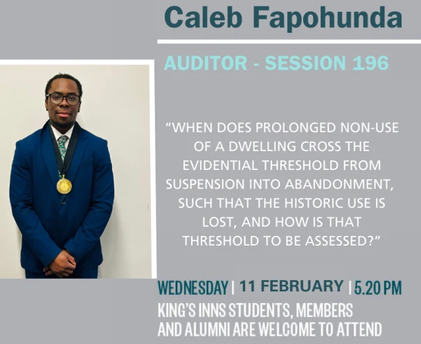The Honorable Society of King’s Inns, Constitution Hill, Dublin 7 at which The Auditor, Mr Caleb Fapohunda, will deliver the Address: