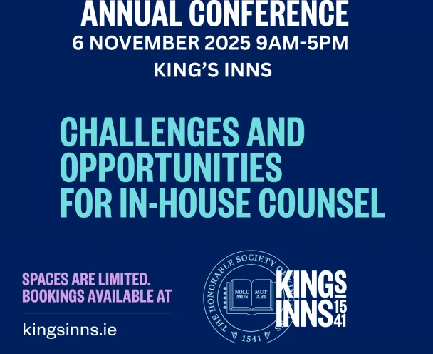 The conference will take place on Thursday, November 6th, 2025, from 9am to 5pm. Designed for all graduates of the King's Inns who are practising barristers working outside the Law Library, either in public or private practice.