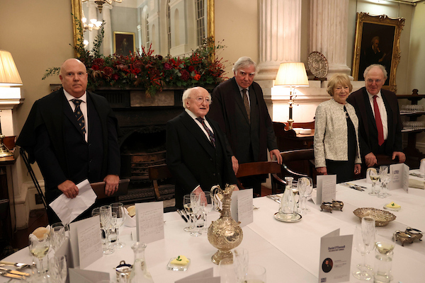 The tradition of Dining, one of the Society’s oldest and most distinguished customs, brings together Benchers, members of the Bar, and students of law to uphold the collegiate traditions and values of King’s Inns. The presence of President Higgins at this event underscores both the continuity of that tradition and the enduring influence of King’s Inns in Ireland’s legal, political, and civic life.